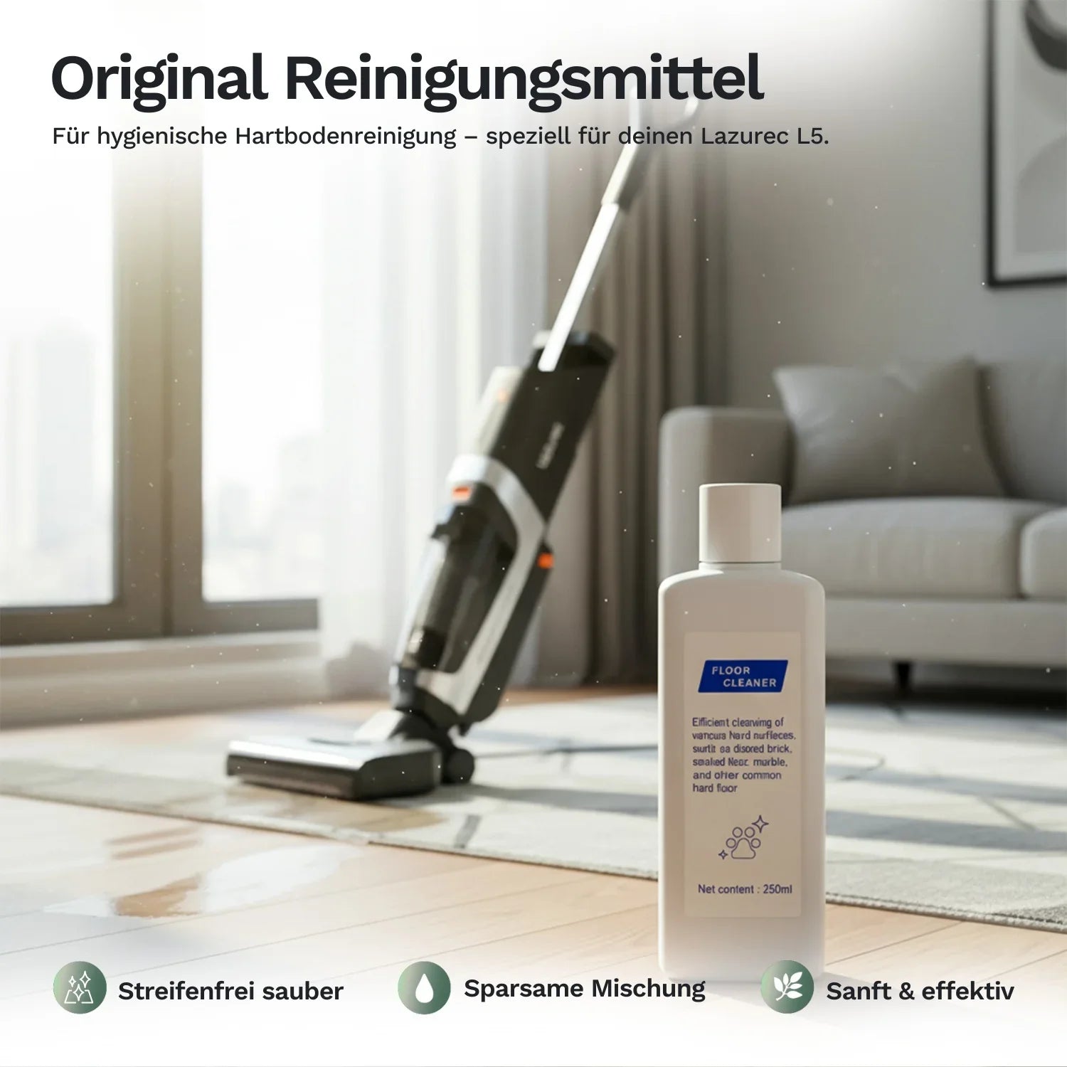 Orijinal Lazurec Temizlik Solüsyonu, özel olarak Lazurec L5 Islak-Kuru Süpürge ile kullanım için geliştirilmiştir. 250 ml Konsantre, 1:50 karışım oranı sayesinde birçok temizlik işlemine yeter ve özellikle verimli ve tasarruflu kullanımıyla öne çıkar. Seramik, ahşap ve laminat zeminlerde hijyenik bakım için idealdir – tamamen kalıntısız.